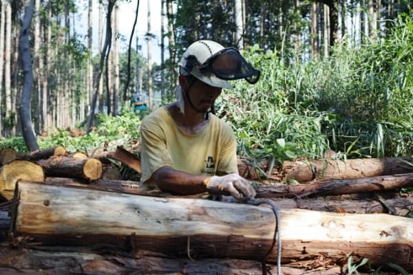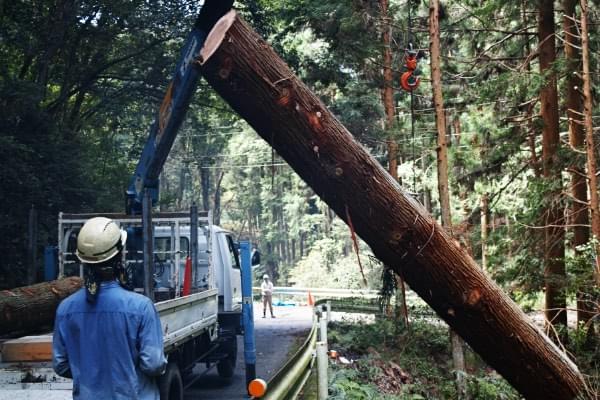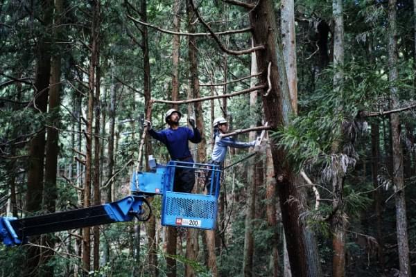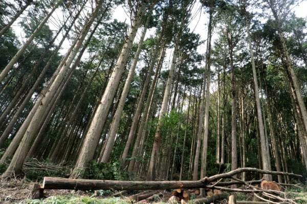 山に光を入れ、健康な状態にすることを目指します。過密になった人工林に適度な間伐を行います。できる限り木の搬出を行い、困難な場所は切り捨て間伐を行います。 その他、住宅地などで大きくなりすぎてお困りの木の伐採なども承ります。