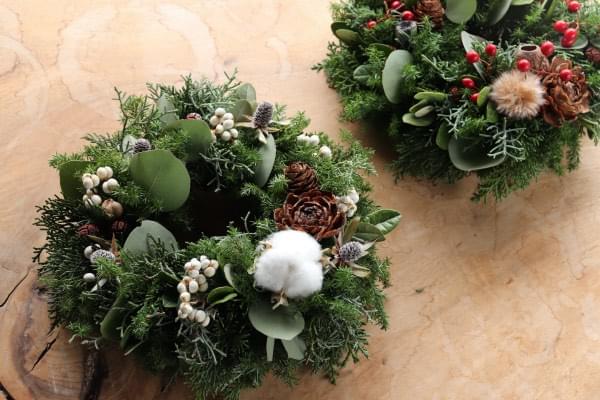 娘を出産後、夫が木こりで山の植物に触れる機会があったこと、義母がフラワーアレンジメントの先生をしていたことから家族の協力もあり、植物でものづくりを始める。